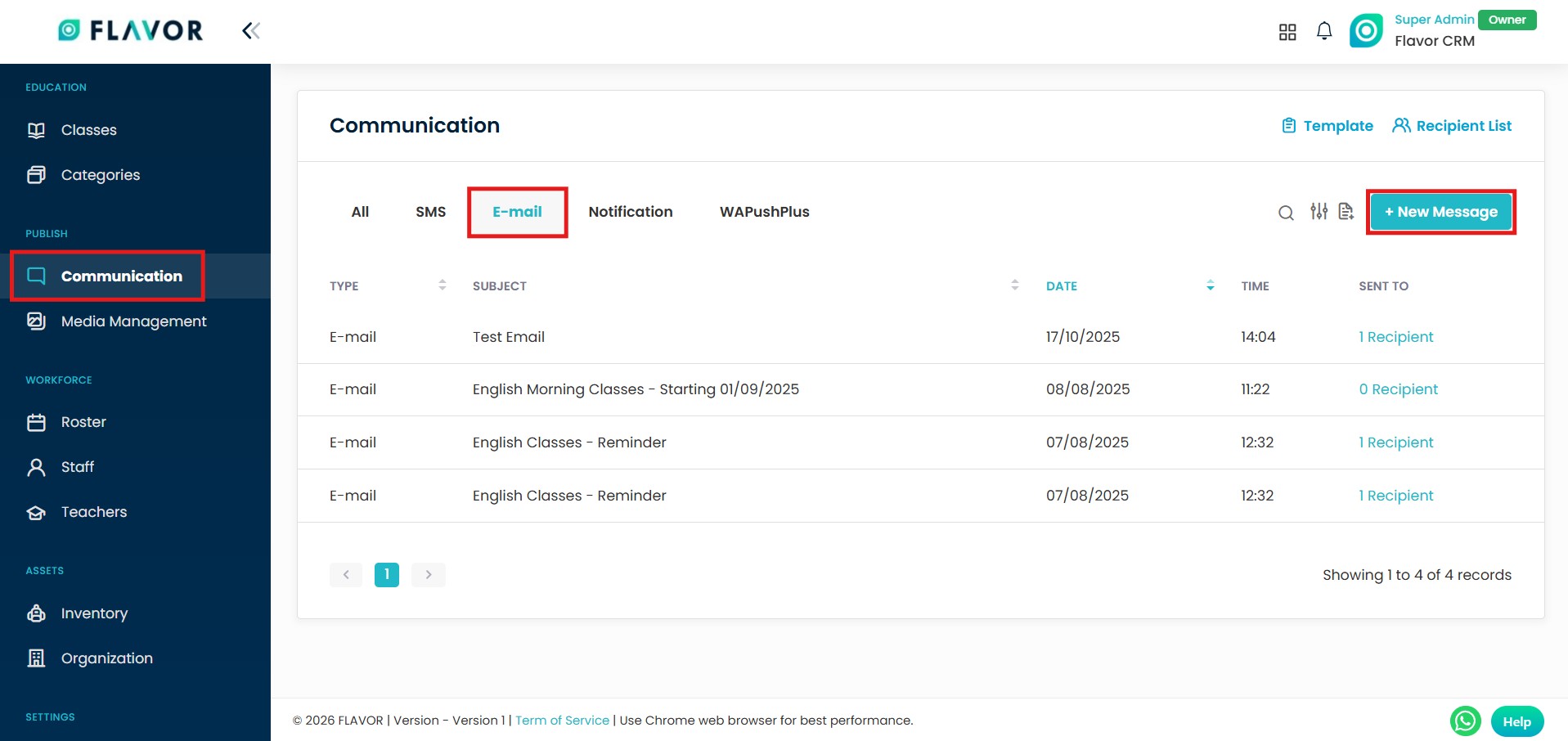 - Select the Email section within the Communication module.