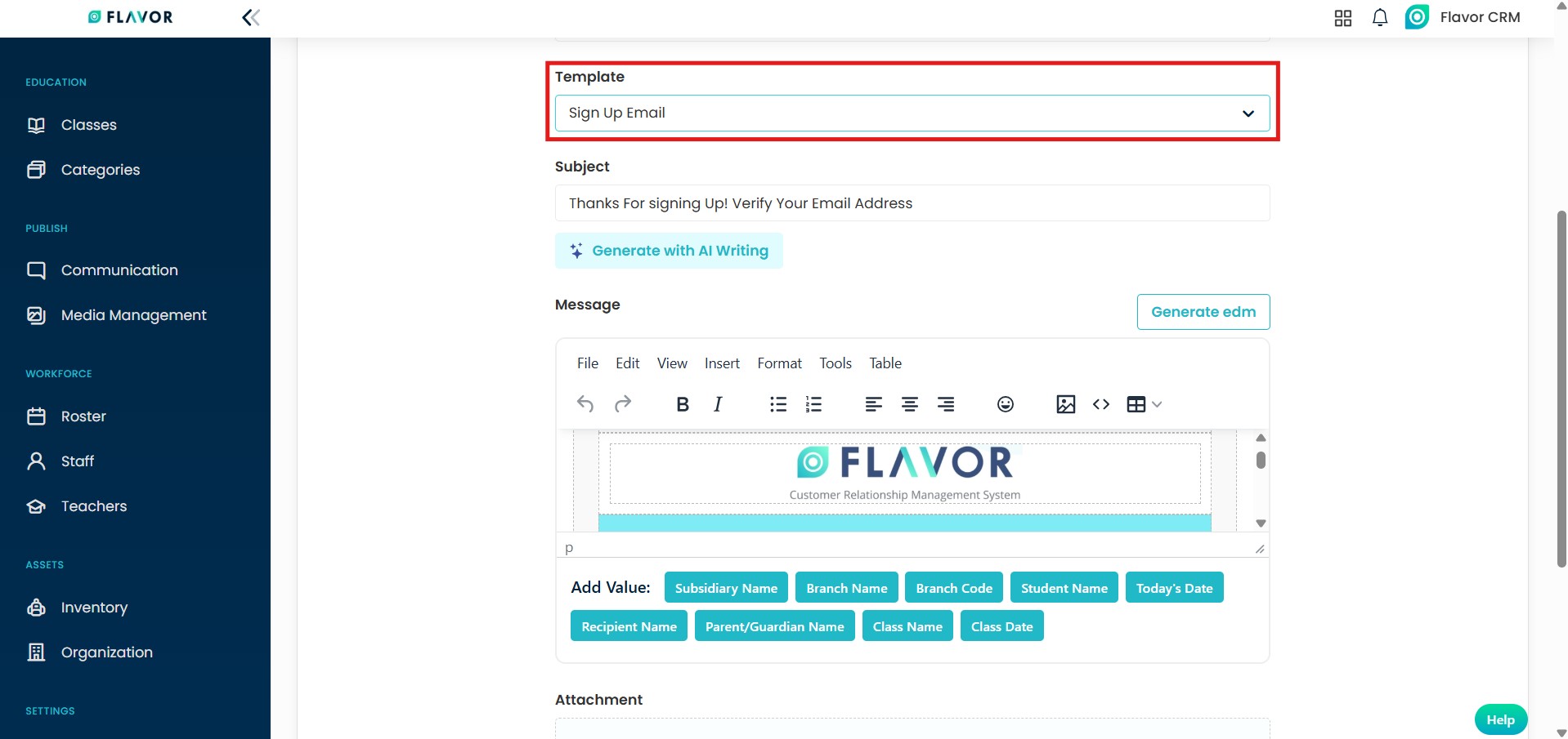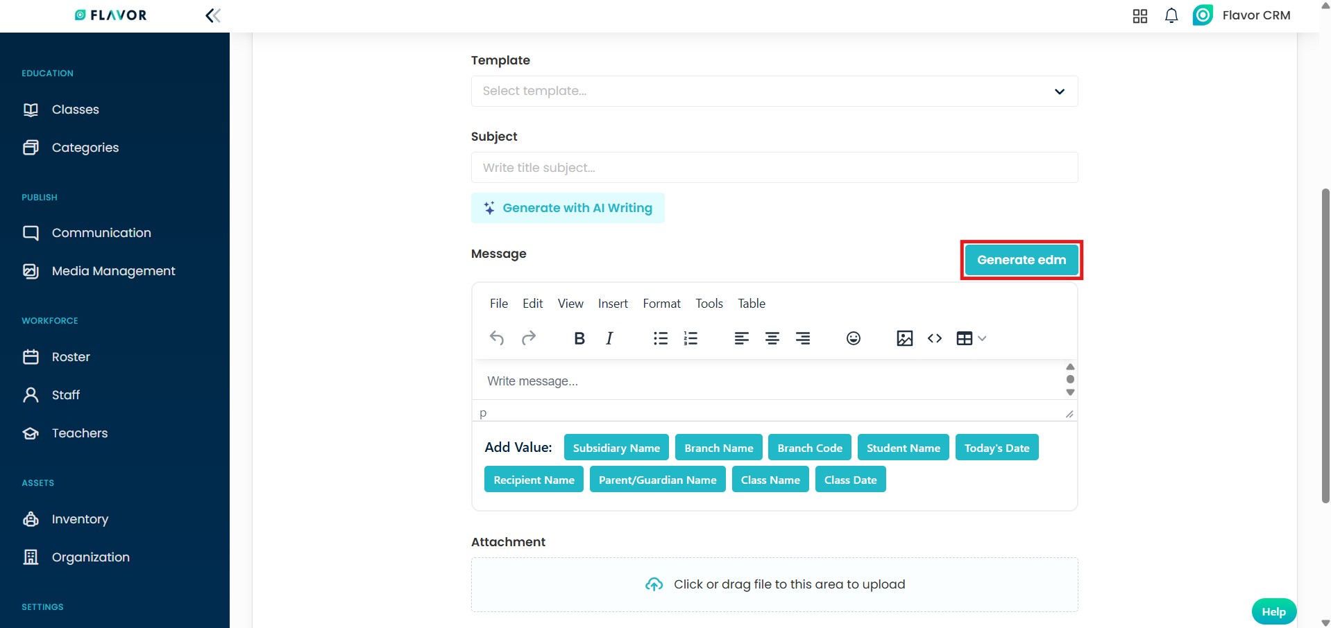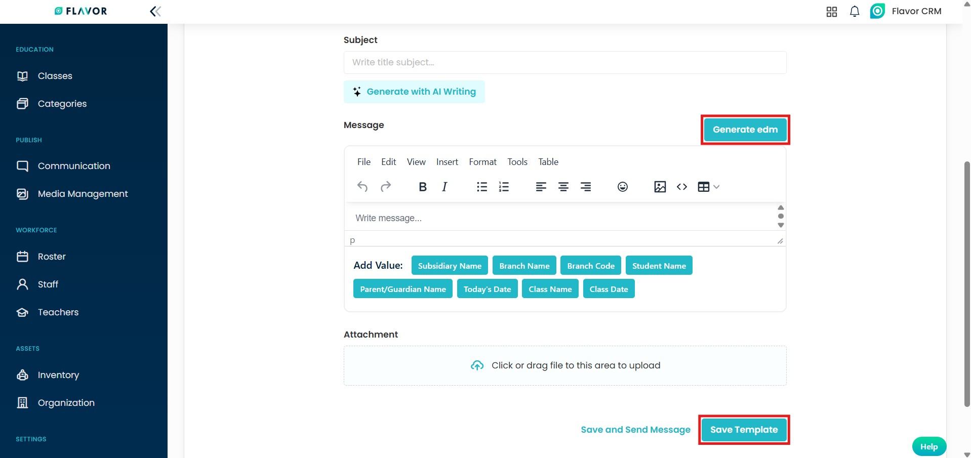 - In the Message section, click on Generate EDM option to open the EDM editor.