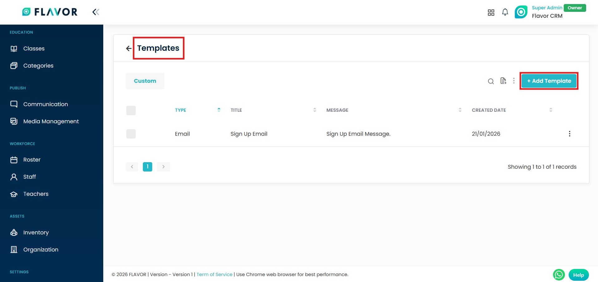 - From the Templates section, click on the Add Template option at the top right.