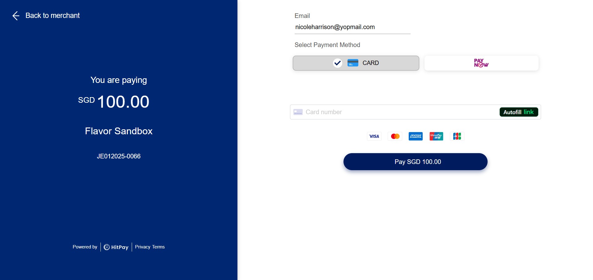 After clicking the HitPay payment button, the client is redirected to a secure HitPay payment page.