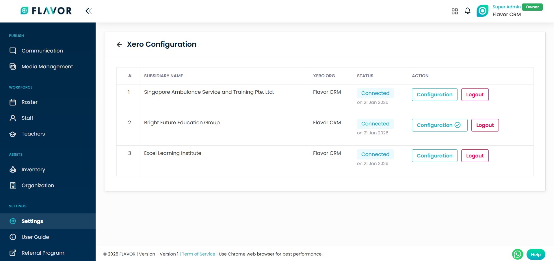 Q1. Do I need to connect each subsidiary in Flavor CRM separately to Xero?