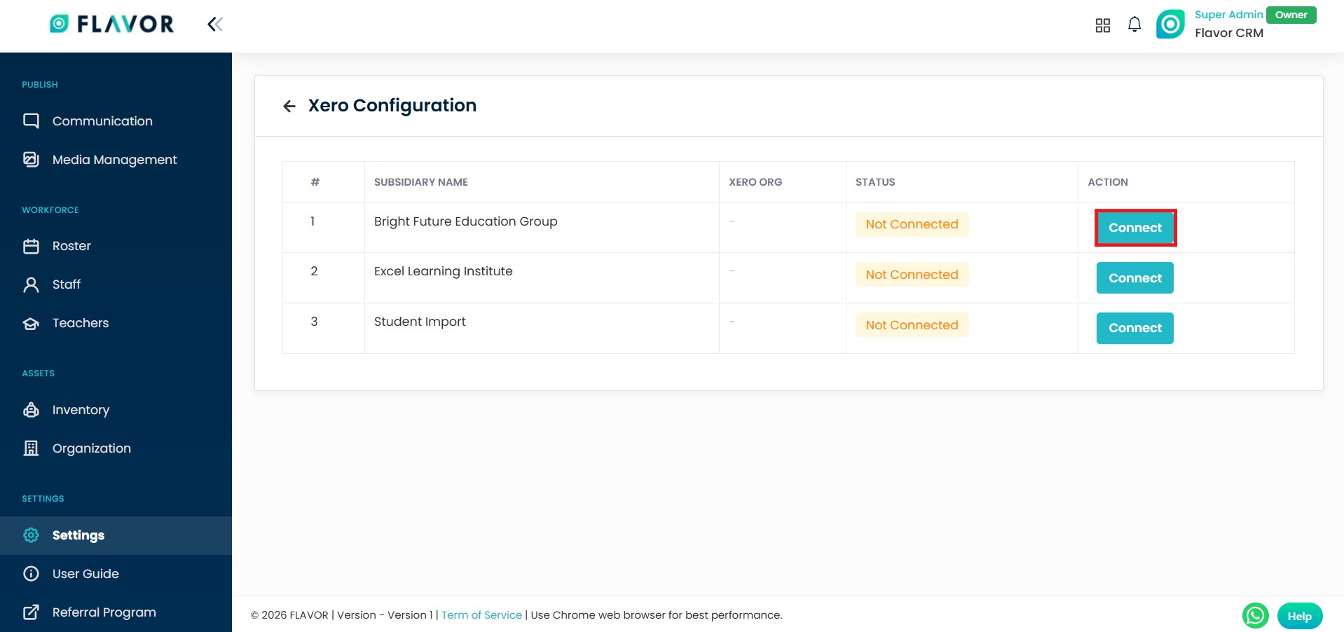 Q1. Do I need to connect each subsidiary in Flavor CRM separately to Xero?