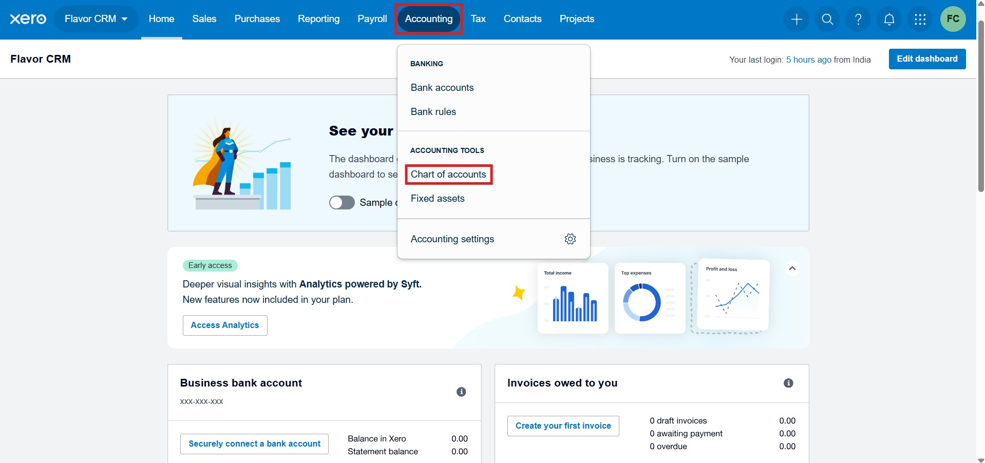 Open Organization in Xero, from the Accounting module, click on Chart of Accounts.