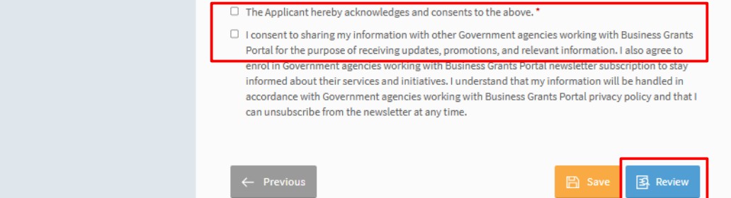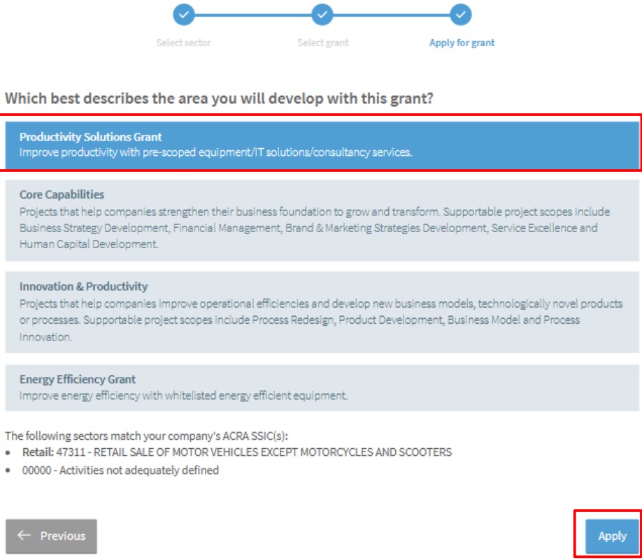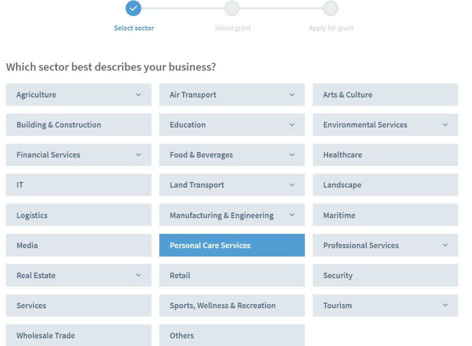 Step 2 : Select Business Sector And Grant Type
