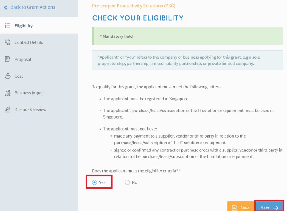 - Check Yes if you meet the eligibility criteria
