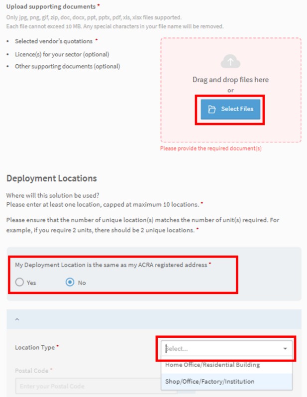 5. Fill in your deployment location if it is different from your ACRA registered address.