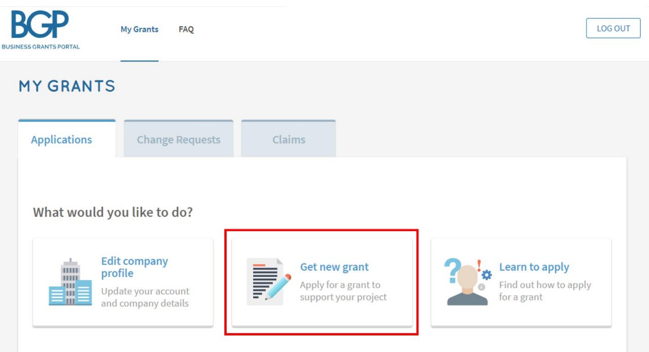 - Click on ‘Get new grant