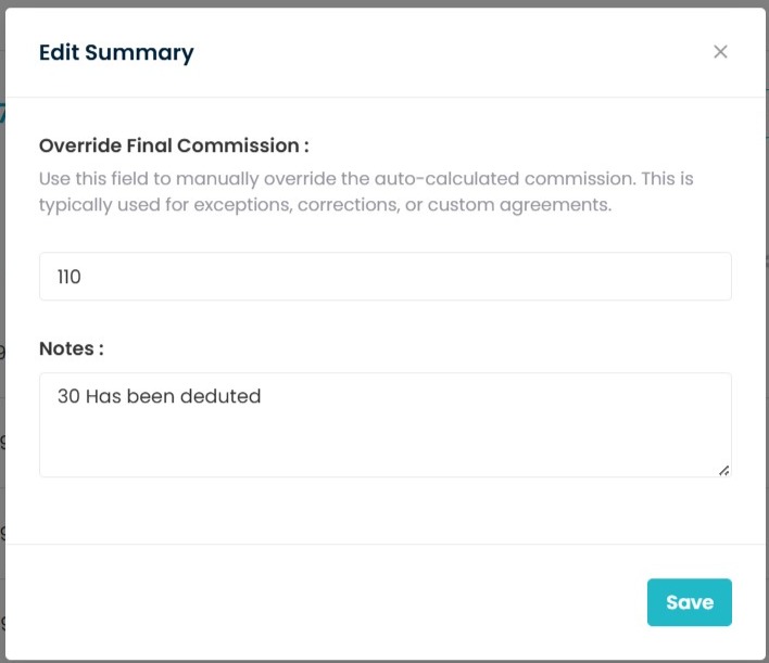 Toggle this setting to decide whether it should be included in the commission report. When enabled, it will be included; when disabled, it will not.